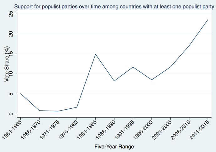 Populism appears to be a recent phenomenon, but it has been on the rise for quite some time (Figure 1). Despite recent setbacks in the polls in the Netherlands and France, it is doubtful that populism will be going away. The world’s economic-political order appears to be at an inflection point, with its future direction hanging very much in balance.