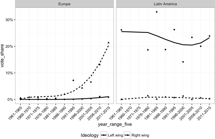 Figure 2 Contrasting patterns of populism in Europe and Latin America