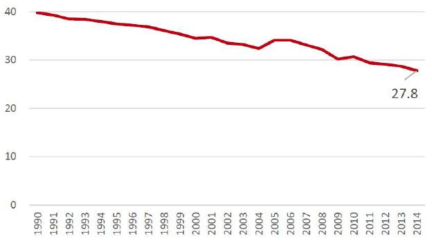 Figure 1 Change in the gender wage gap index in Japan, 1990–2016