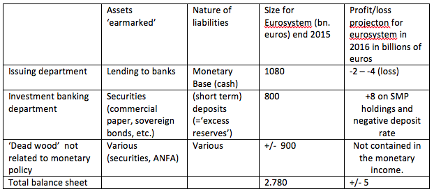 The investment banking department is now the real profit centre in the Eurozone (as elsewhere in countries at, or close to the zero lower bound). In 2015, the revenues of the issuing department of the Eurosystem were only €500 million, which would not even cover the operating costs of the ECB in Frankfurt, which amounted to over €600 million (the total operating costs of the entire Eurosystem – the ECB plus NCBs – amount to over €2 billion).